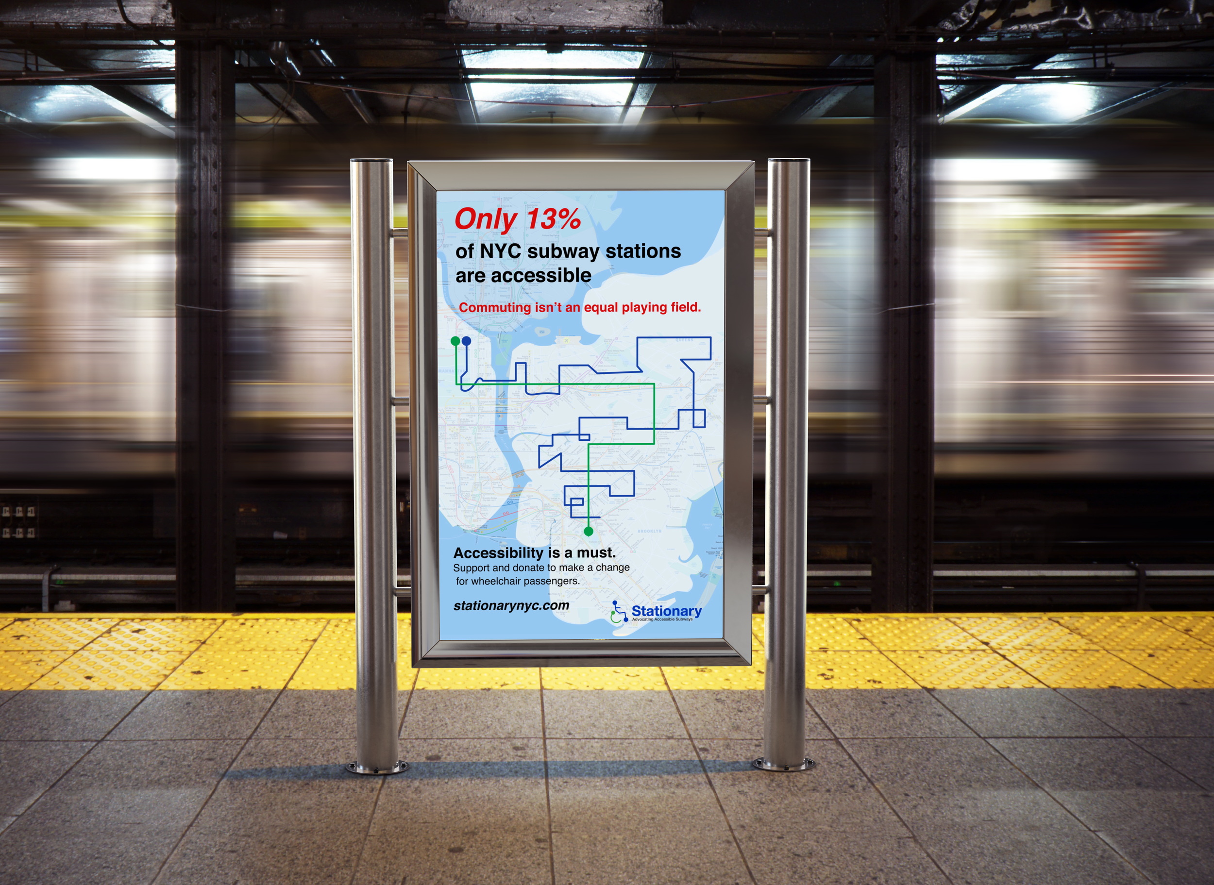 An awareness campaign, partnering up with Disability Rights New York (DRNY) to raise awareness and money to build accessible platforms in NYC subway stations. New York City has 472 subway stations, where only 29% (135 stations) are accessible to some extent. Even if these stations are accessible, some of the train lines are not accessible.